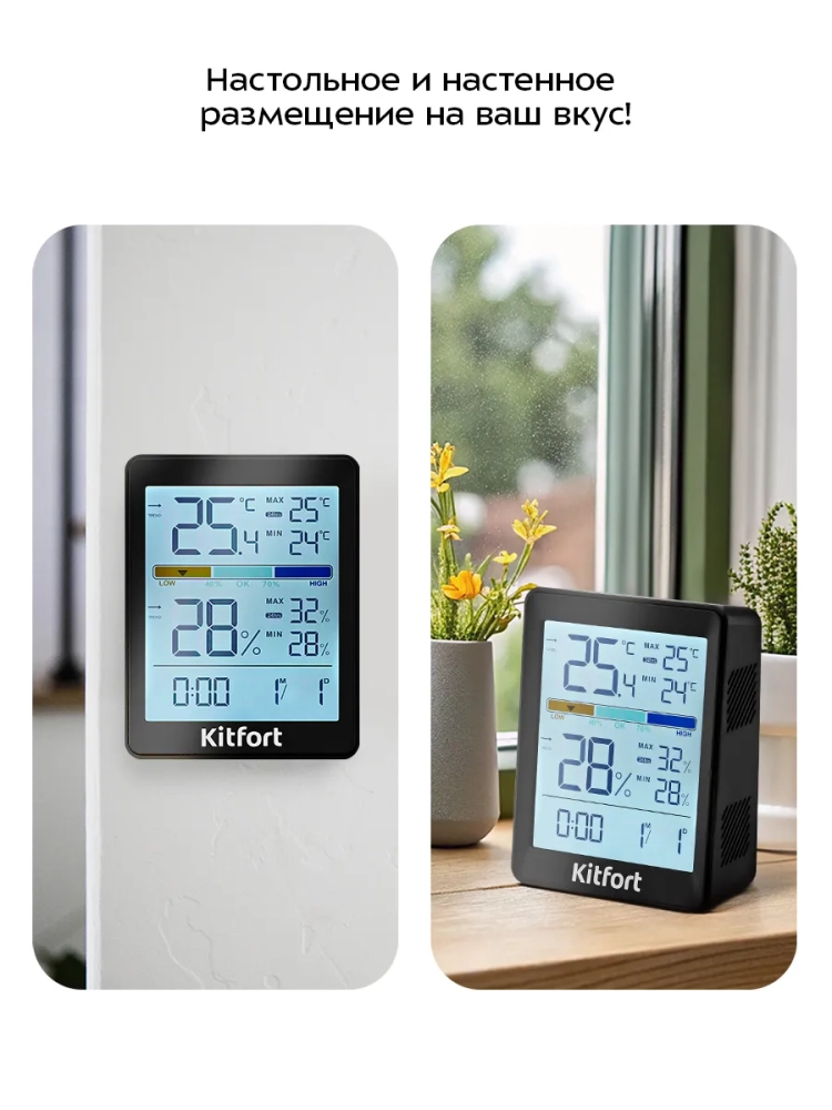 Благодаря компактному размеру и стильному дизайну часы с термометром и гигрометром легко впишутся в ваш интерьер.