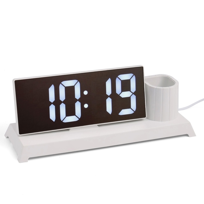 Часы - органайзер электронные, настольные, белая индикация, 11 x 25 см, от USB