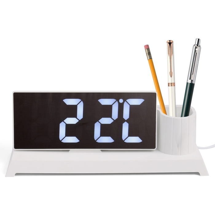 Часы-будильник электронные с календарем, термометром и органайзером представлены в современном минималистичном дизайне, они отлично впишутся в ваш интерьер. Интерьерные часы станут прекрасным декором для дома и дачи, их можно поставить как на прикроватную тумбочку в спальне, детской комнате, гостиной так и на стол или на комод в зале, холле или на кухне. Будильник настольный имеет кварцевый механизм, который гарантирует высокую точность хода. Будильник на не требует частой замены батареек , так как работает от USB провода.