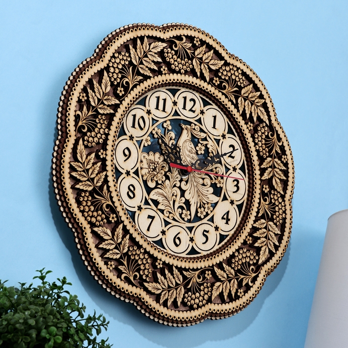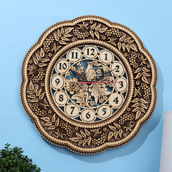 Часы резные "Птичка", д - 30 см, фанера