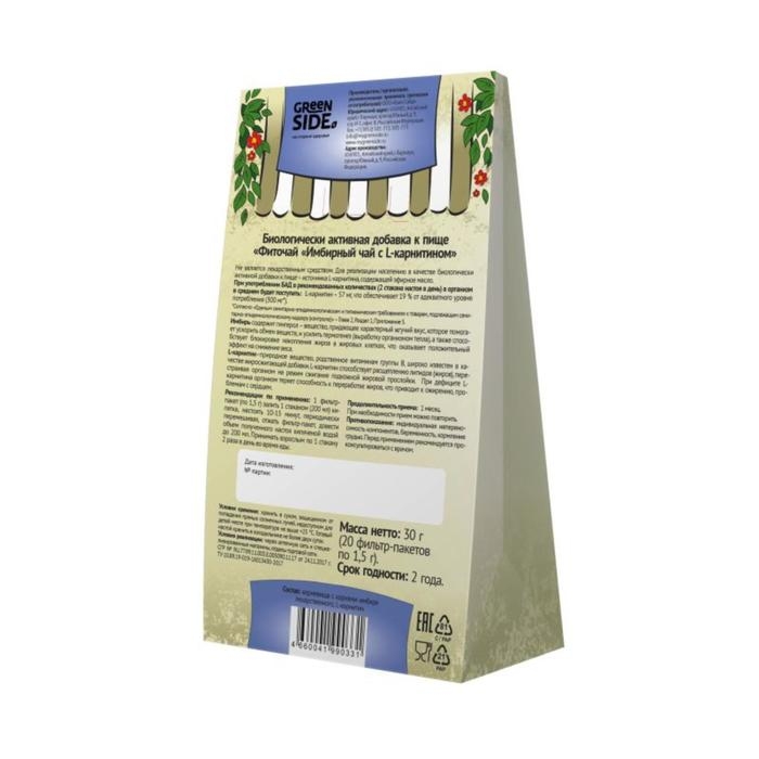 Чай имбирный с L-карнитином, 20 фильтр пакетов по 1.5 г