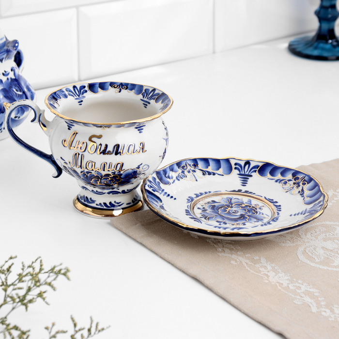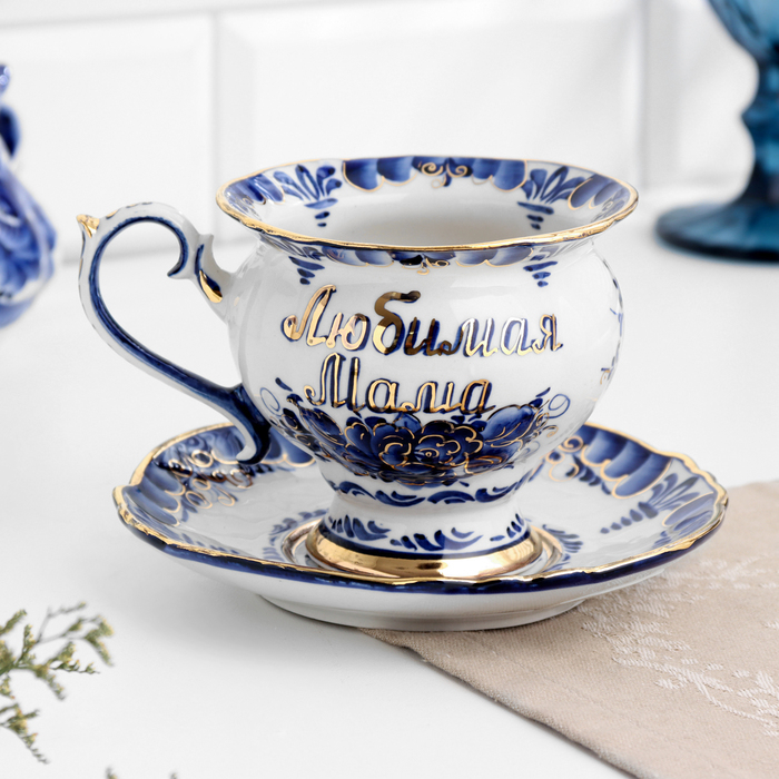 Чайная пара "Грация" , золото, (Любимая Мама), 300 мл, гжель
