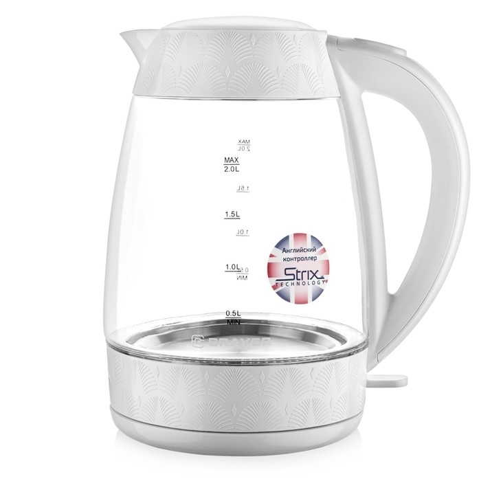 Чайник электрический BRAYER 1024BR-BK, стекло, 2 л, 2200 Вт, белый