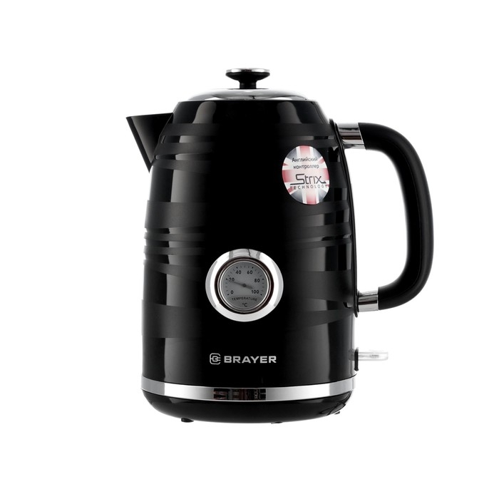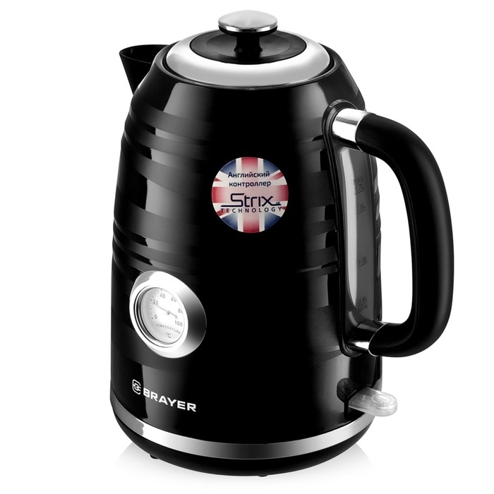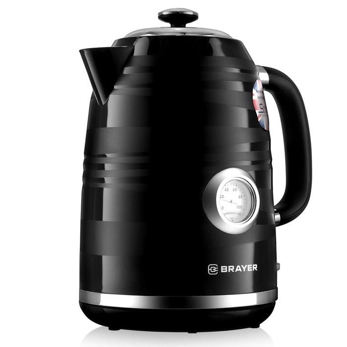 Чайник электрический BRAYER 1059BR, пластик, 1.7 л, 2200 Вт, термометр, чёрный