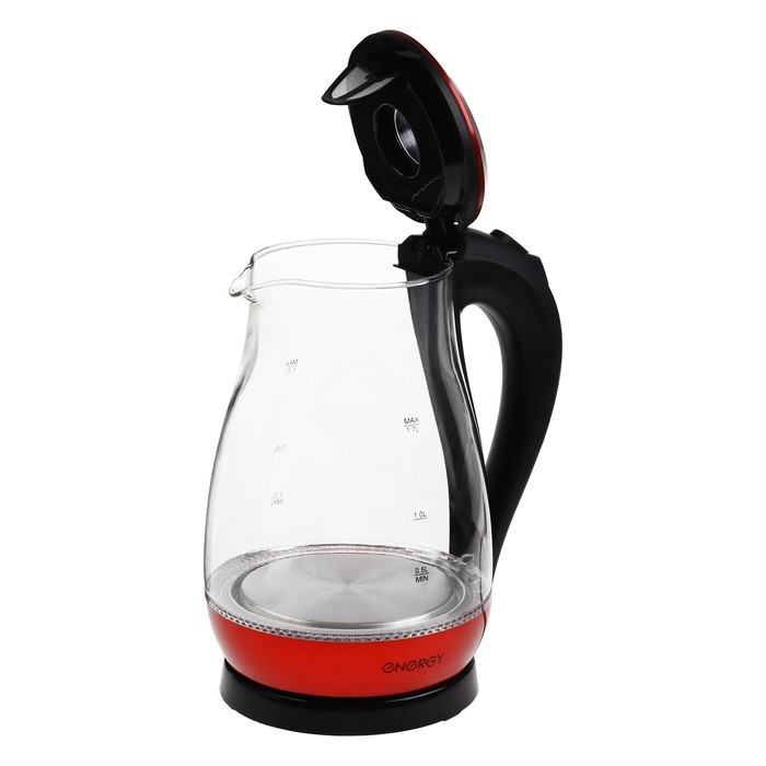Чайник электрический ENERGY E-204, 1.7 л, стекло, 2200 Вт, красный