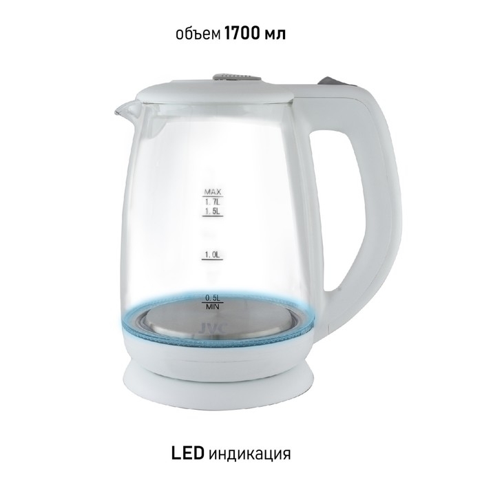 Чайник электрический jvc JK-KE1518, стеклянный, 2200 Вт, 1.7 л, белый