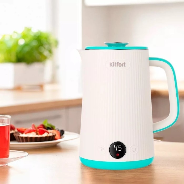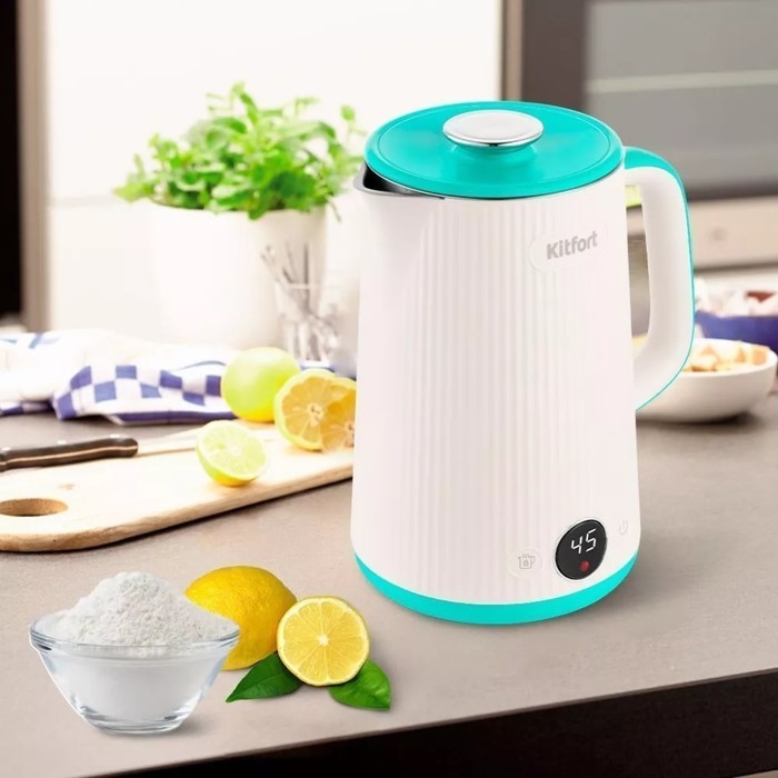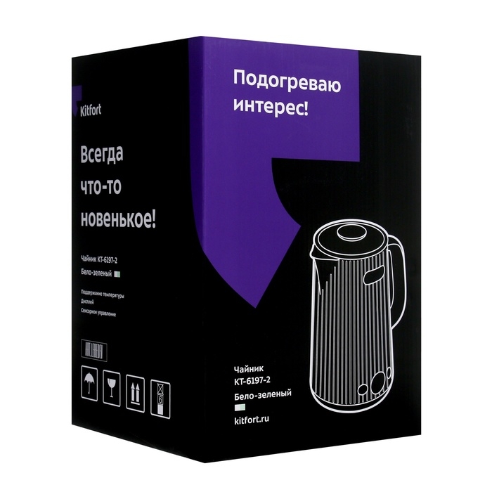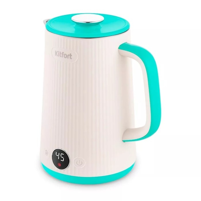 Чайник электрический Kitfort КТ-6197-2, пластик, колба металл, 1.5 л, 1500 Вт, бело-зеленый