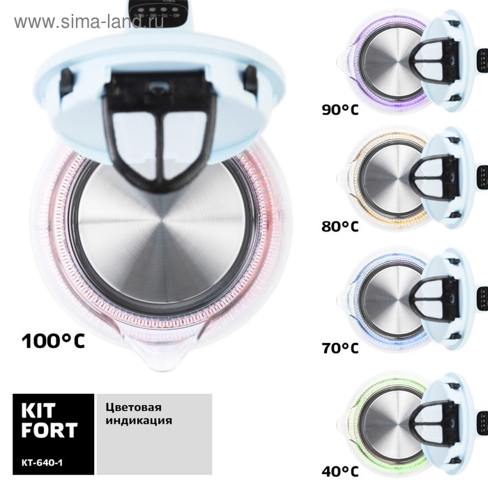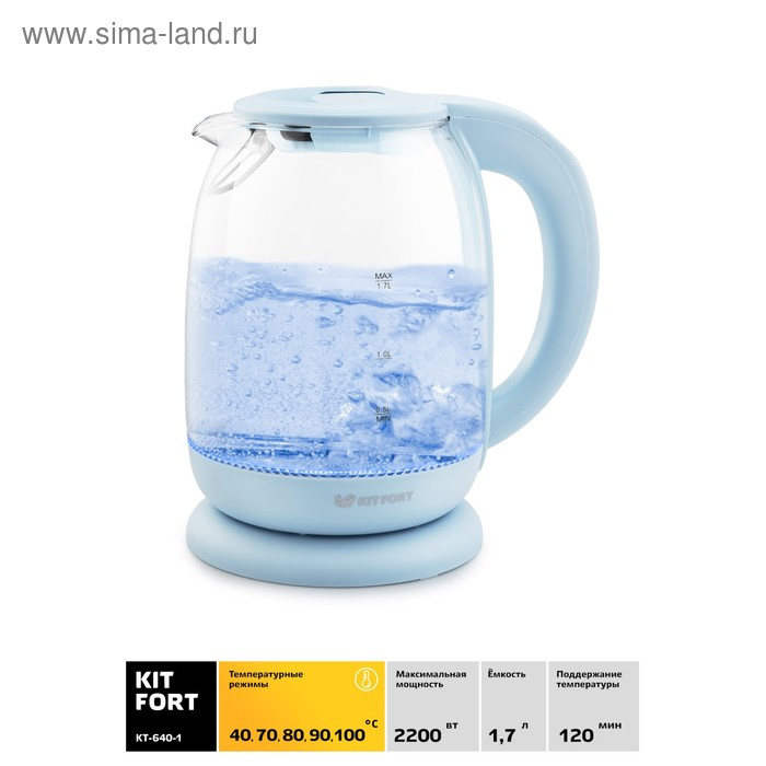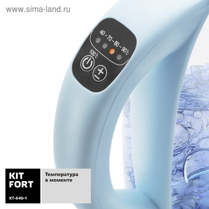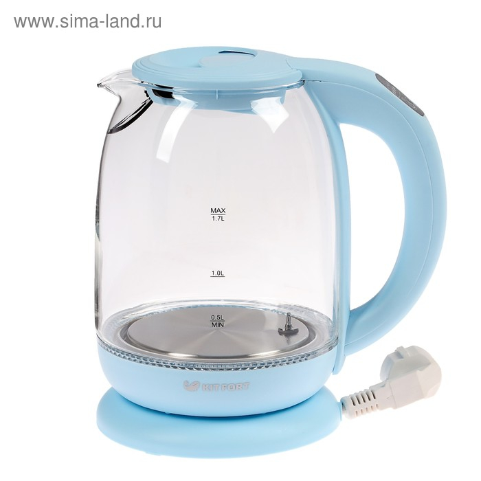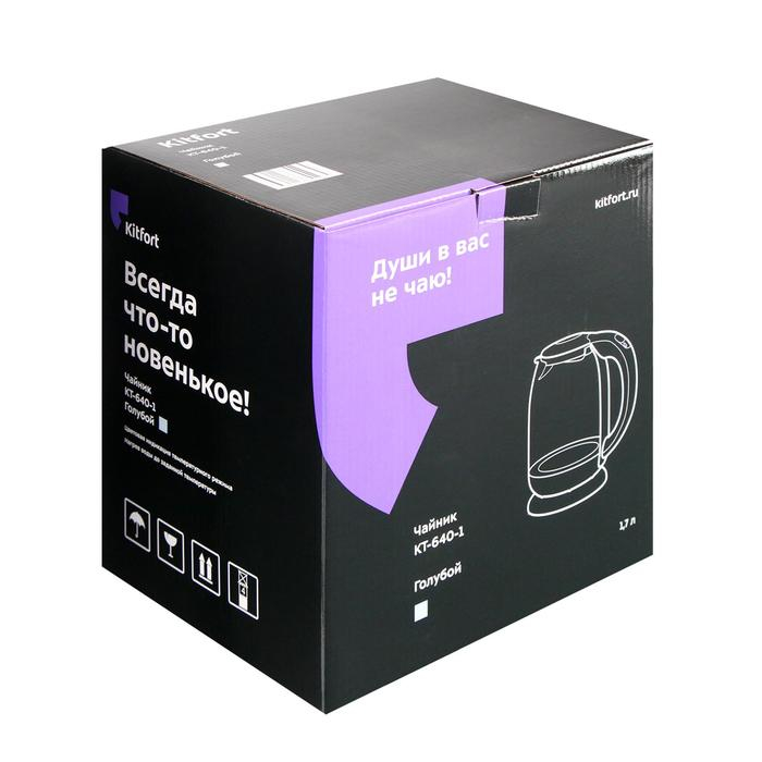 Чайник электрический Kitfort KT-640-1, стекло, 1.7 л, 2200 Вт, подсветка, голубой