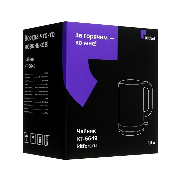 Чайник электрический Kitfort КТ-6649, металл, 1.5 л, 2200 Вт, голубой