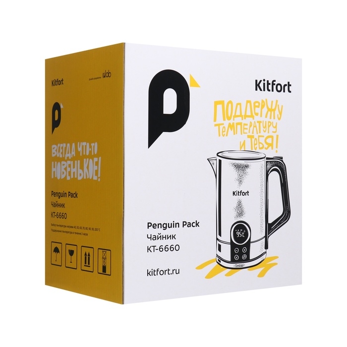 Чайник электрический Kitfort КТ-6660, металл, 1,7 л, 2200 Вт, LED-дисплей, серебристый