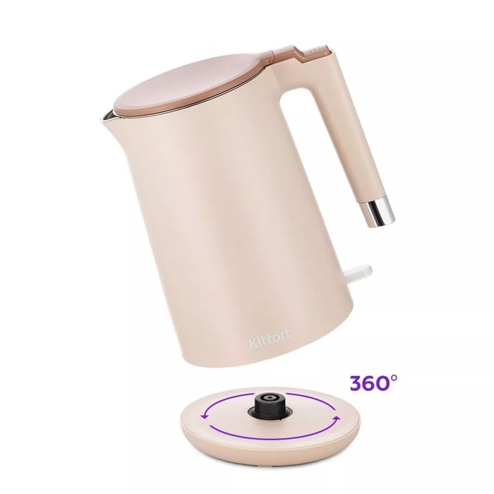 Чайник электрический Kitfort КТ-6662-1, пластик, колба металл, 1.5 л, 2200 Вт, бежевый
