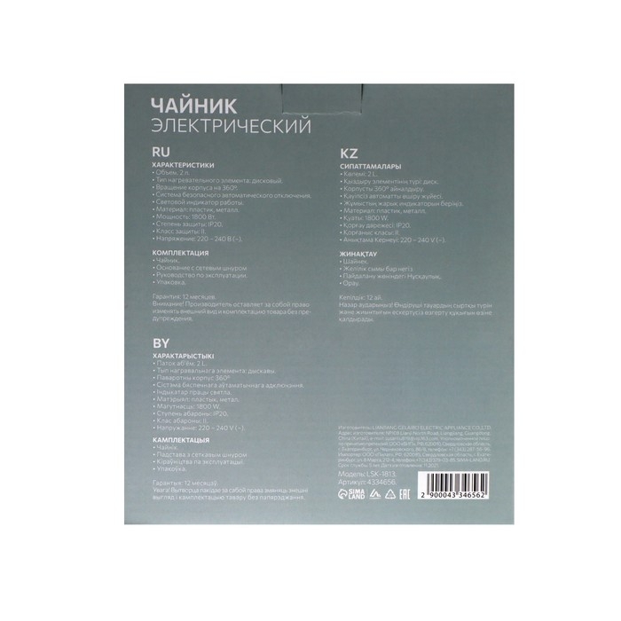 Чайник электрический LuazON LSK-1813 выполнен в стильном металлическом корпусе. Объем чайника составляет 2 литра.