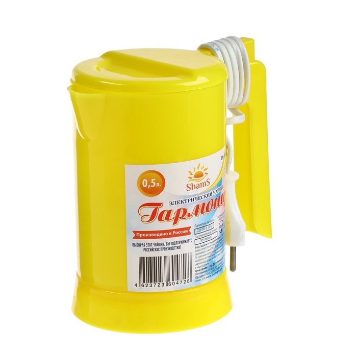Чайник электрический ShamS SH-002 Гармония, 0.5 л, пластик, 800 Вт, жёлтый