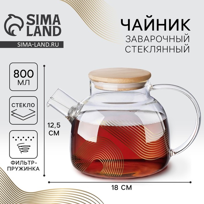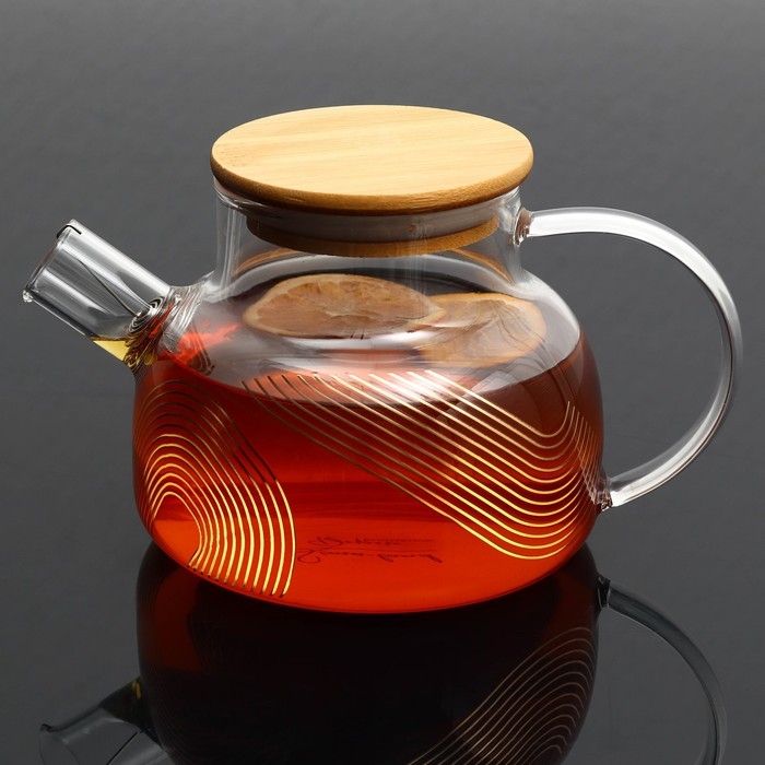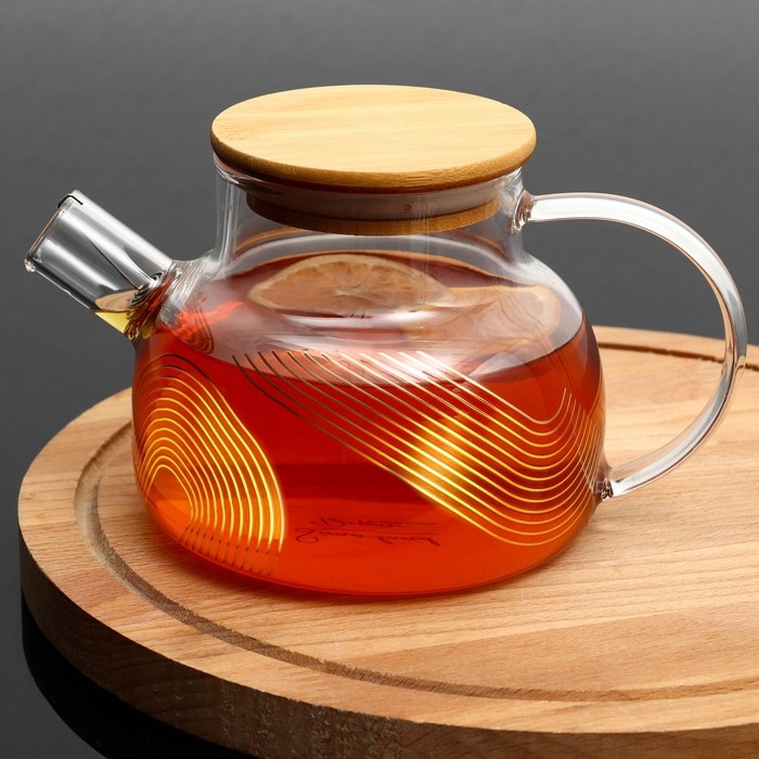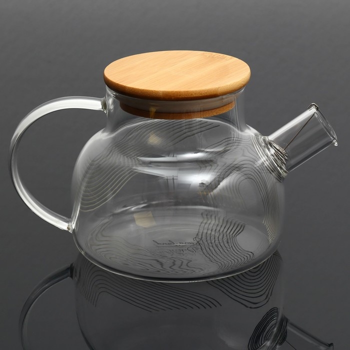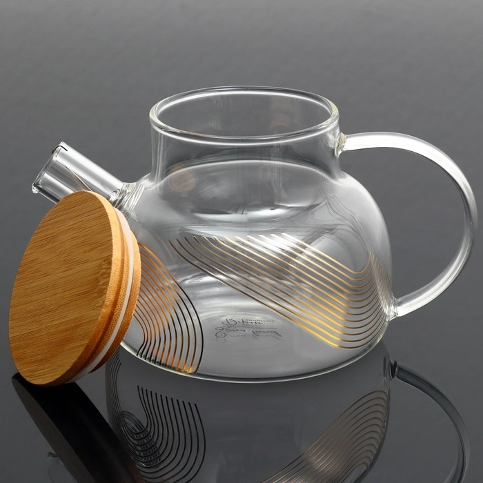Чайник стеклянный заварочный с бамбуковой крышкой «Геометрия», 800 мл