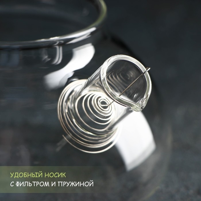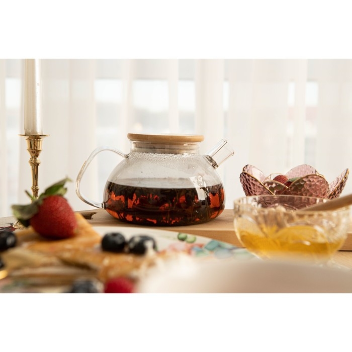 Чайник стеклянный заварочный с бамбуковой крышкой и металлическим фильтром Magistro «Эко», 600 мл