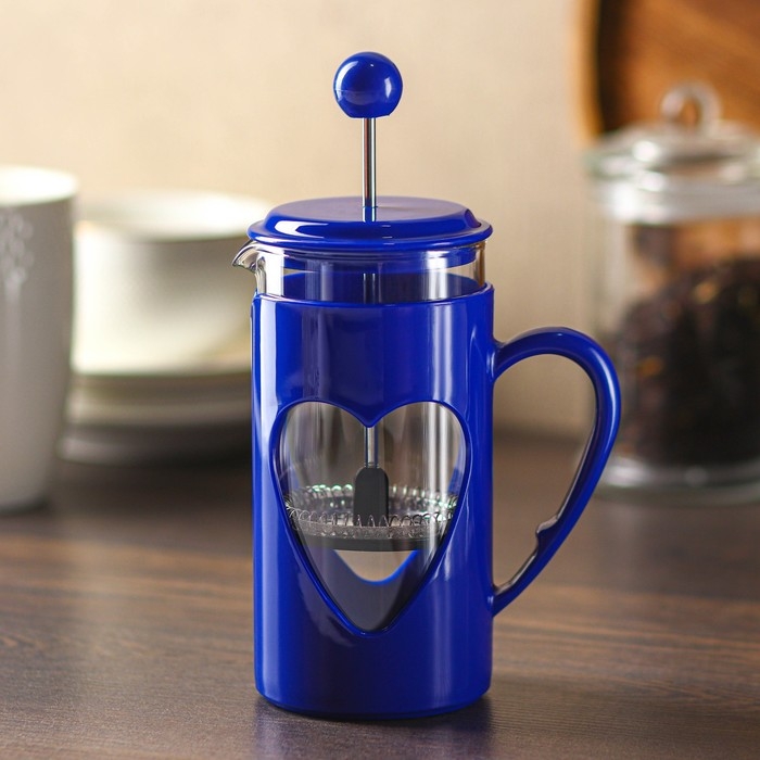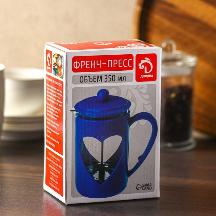 Чайник заварочный френч - пресс Доляна «Комплимент», 350 мл, стекло, цвет синий