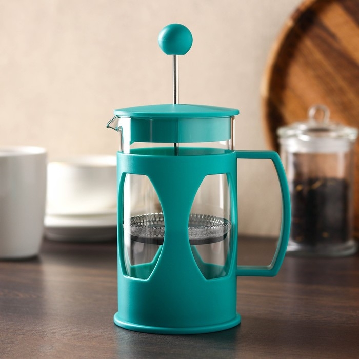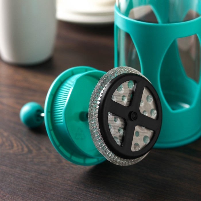 Чайник заварочный френч - пресс Доляна «Оливер», 600 мл, стекло, цвет бирюзовый
