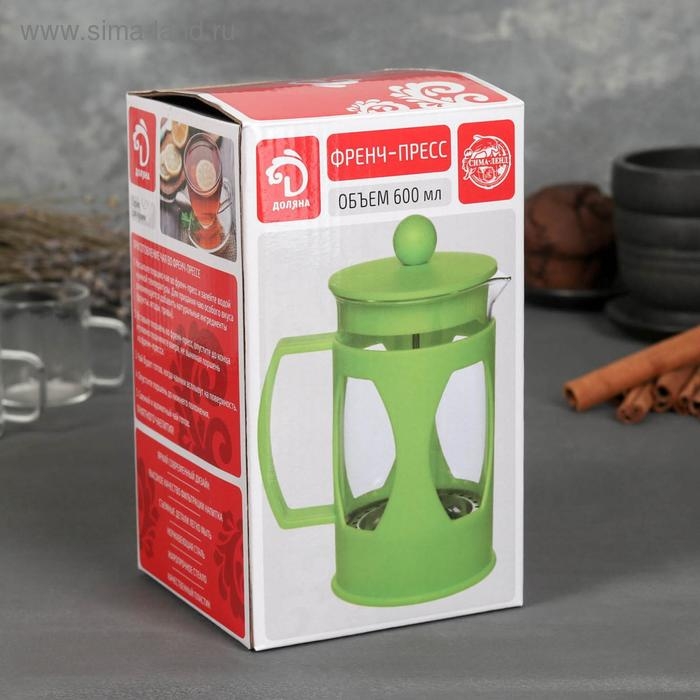 Чайник заварочный френч - пресс Доляна «Оливер», 600 мл, стекло, цвет чёрный