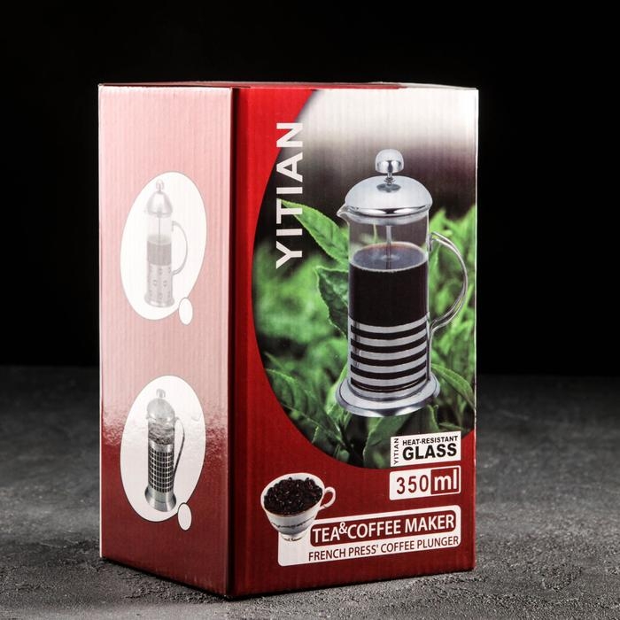 Чайник заварочный френч - пресс Доляна «Оливер», 350 мл, стекло, цвет чёрный