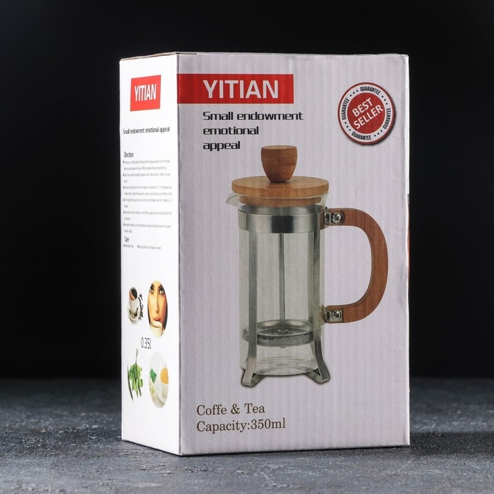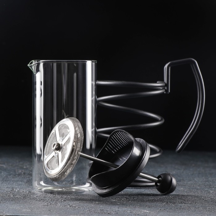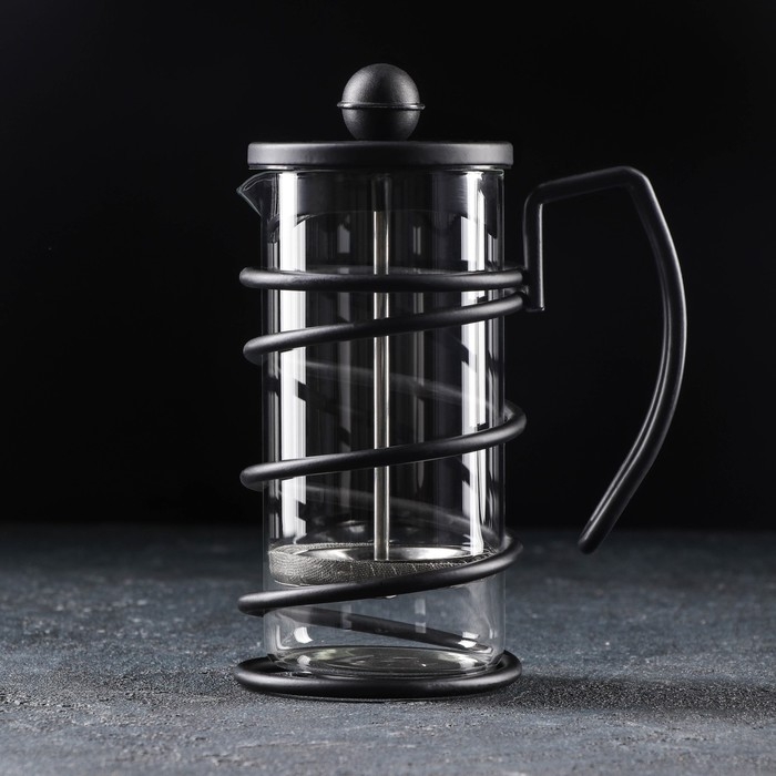 Чайник заварочный френч - пресс Доляна «Оливер», 350 мл, стекло, цвет чёрный