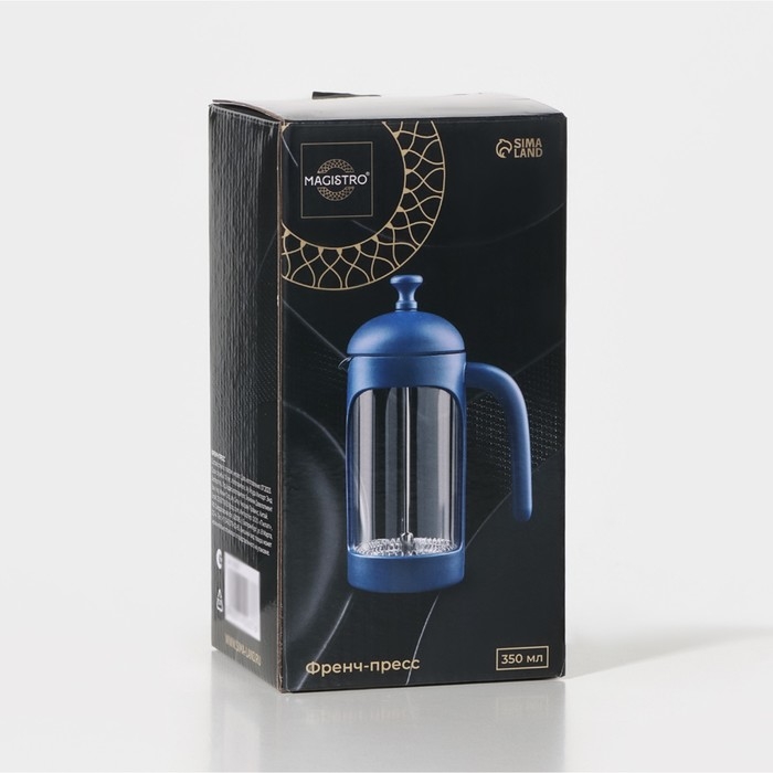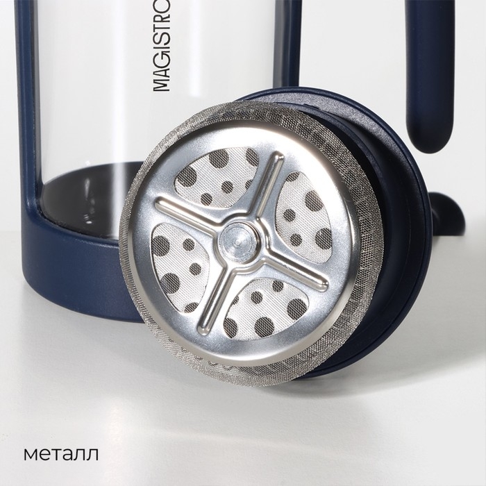 Чайник заварочный френч - пресс Magistro «Хельсинки», 350 мл, стекло, цвет тёмно-синий