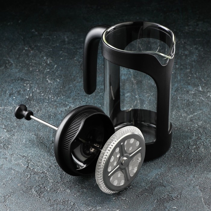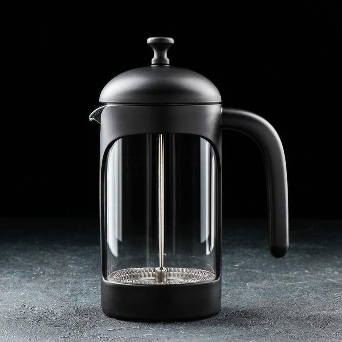Чайник заварочный френч - пресс Доляна «Оливер», 350 мл, стекло, цвет чёрный