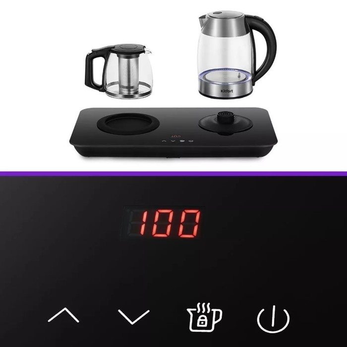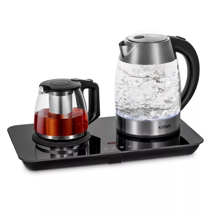 Чайный набор Kitfort КТ-6608, стекло, 1.7/1 л, 2200 Вт, регулировка t°, дисплей, чёрный
