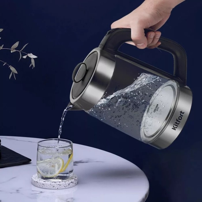 Чайный набор Kitfort КТ-6639, стекло, 1.8/1.2 л, 1500 Вт, чёрно-серебристый