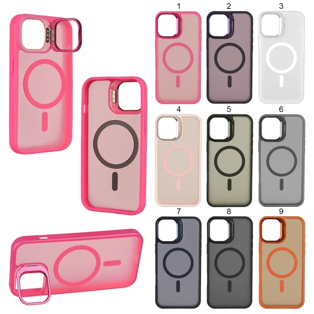Чехол iPh 14 MagSafe матовый цветной с подставкой