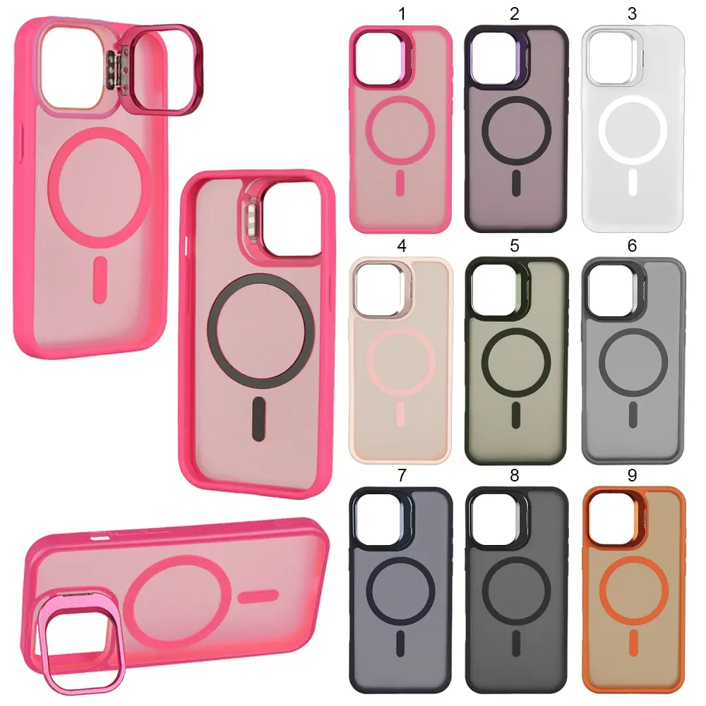Чехол iPh 14 Pro Max MagSafe матовый цветной с подставкой