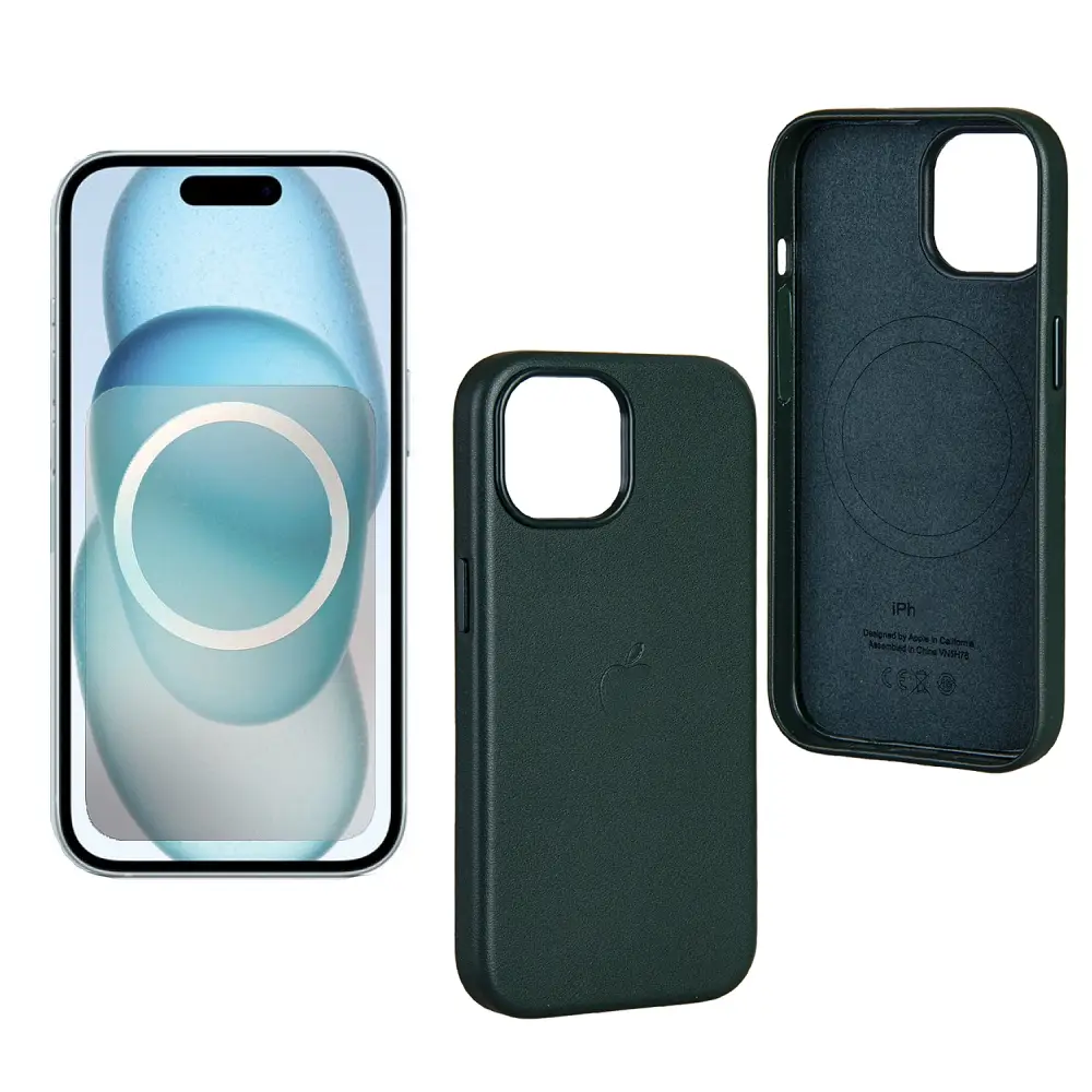Чехол iPh 15 Leather Case 100% ORG (MagSafe) c LOGO Green