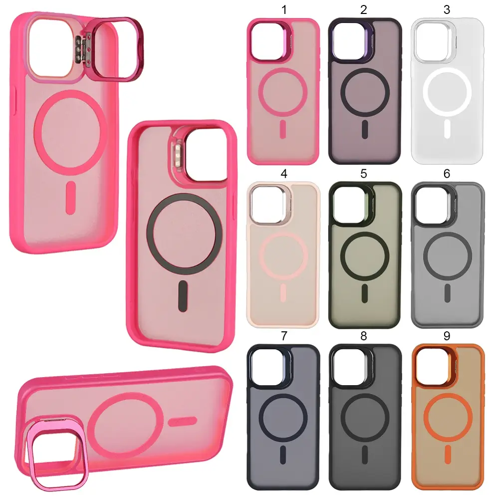 Чехол iPh 15 Pro Max MagSafe матовый цветной с подставкой