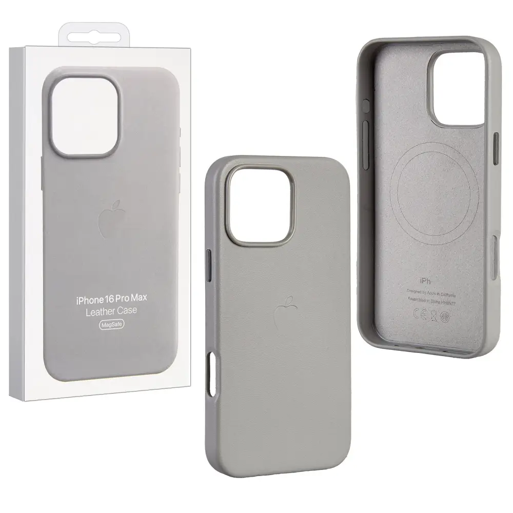 Чехол iPh 16 Pro Max Leather Case 100% ORG (MagSafe) c LOGO Light Grey