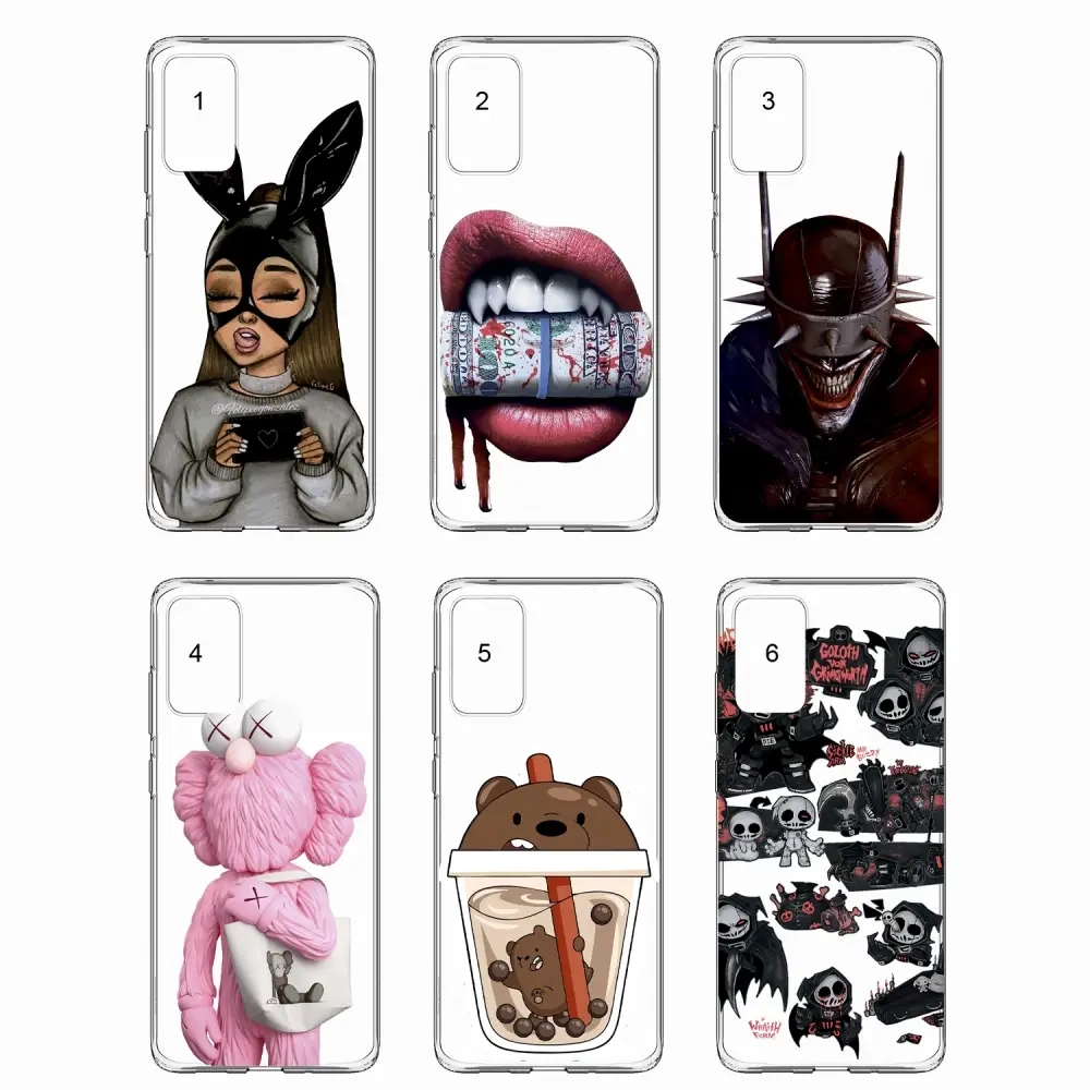 Чехол Samsung A02S TPU 1.0mm прозрачный с принтами в ассортименте