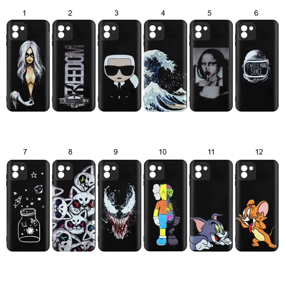 Чехол Samsung A03 TPU 1.0mm матовый черный с принтами