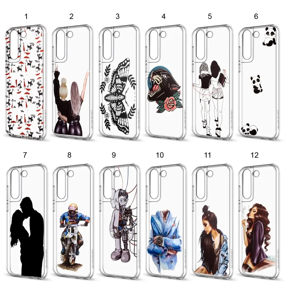 Чехол Samsung S21 FE TPU 1.0mm прозрачный с принтами