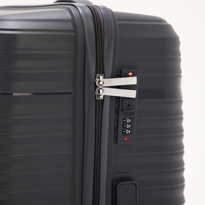 Чемодан большой 100 л (L), отдел на молнии, кодовый замок, 4 колеса, цвет тёмно-серый