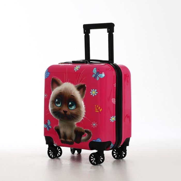Чемодан детский 28 л (S), отдел на молнии, 4 колеса, цвет розовый