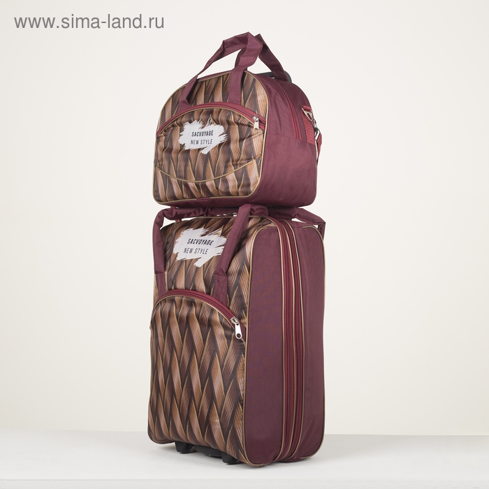 Чемодан малый 20" с сумкой, отдел на молнии, наружный карман, с расширением, цвет коричневый