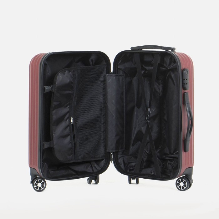 Чемодан малый 36 л (S), «Фабрика КАРТЕКС», отдел на молнии, кодовый замок, 4 колеса, цвет бордовый