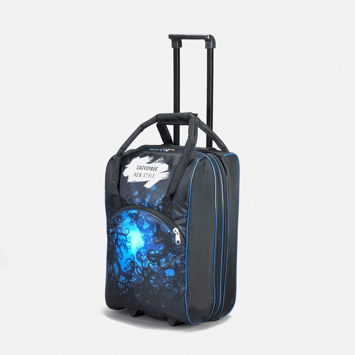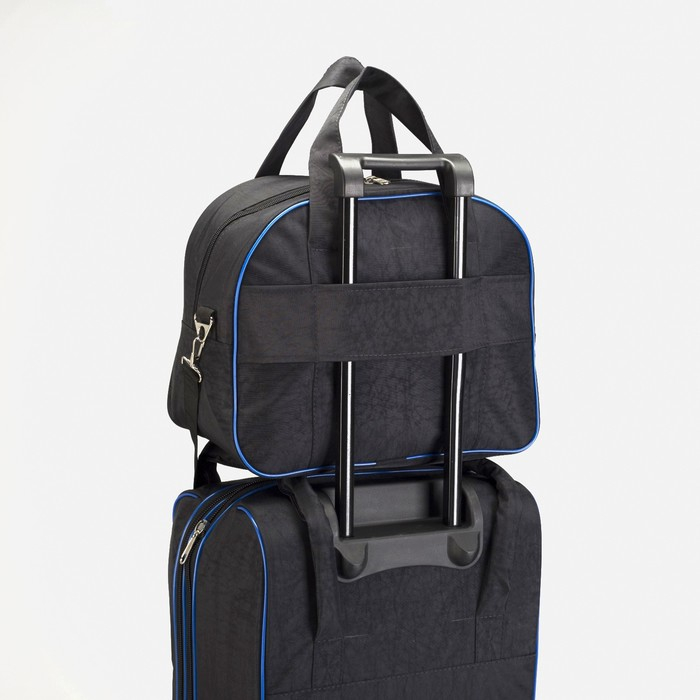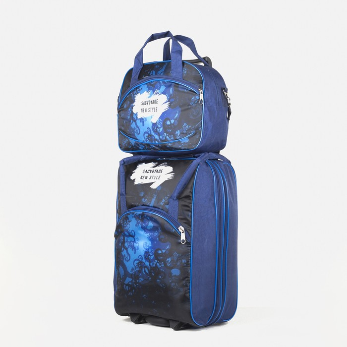 Чемодан малый 37 л (S) с сумкой, отдел на молнии, наружный карман, с расширением, цвет синий