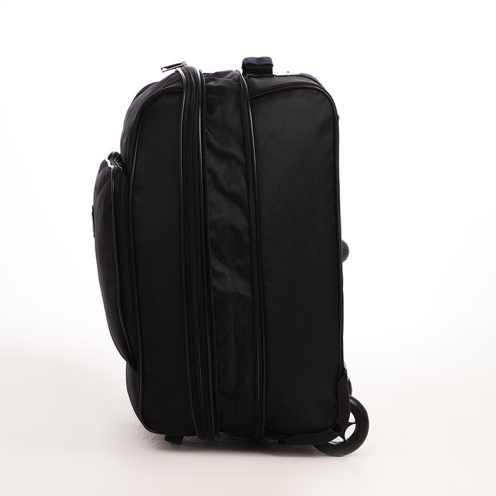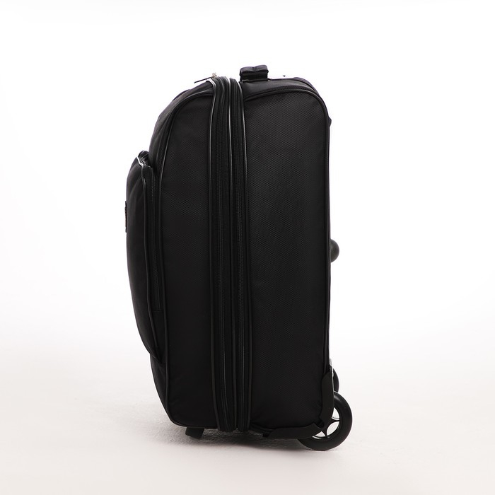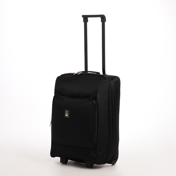 Чемодан малый 52 л (S), «Фабрика КАРТЕКС», отдел на молнии, с расширением, наружный карман, 2 колеса, цвет чёрный
