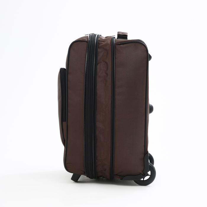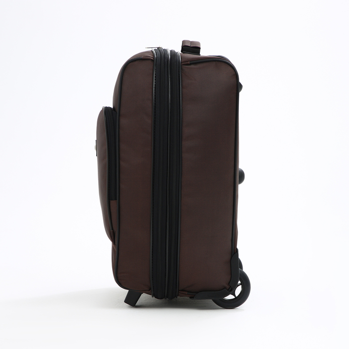Чемодан малый 52 л (S), «Фабрика КАРТЕКС», отдел на молнии, с расширением, наружный карман, 2 колеса, цвет коричневый