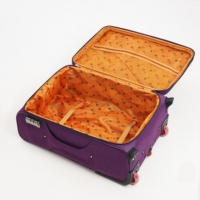 Чемодан средний 52 л (M), отдел на молнии, кодовый замок, с расширением, цвет фиолетовый