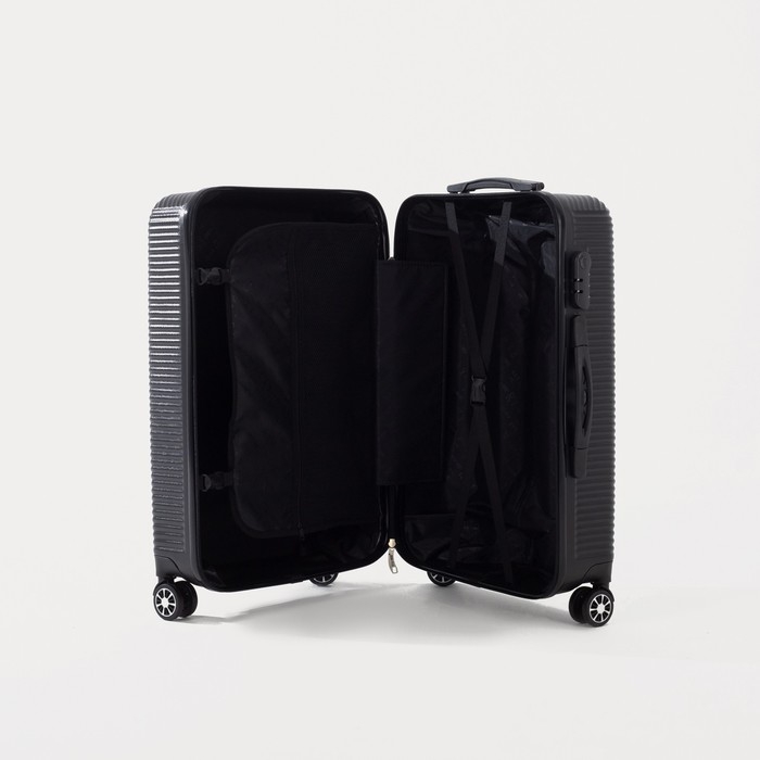 Чемодан средний 60 л (M), «Фабрика КАРТЕКС», отдел на молнии, кодовый замок, 4 колеса, цвет чёрный