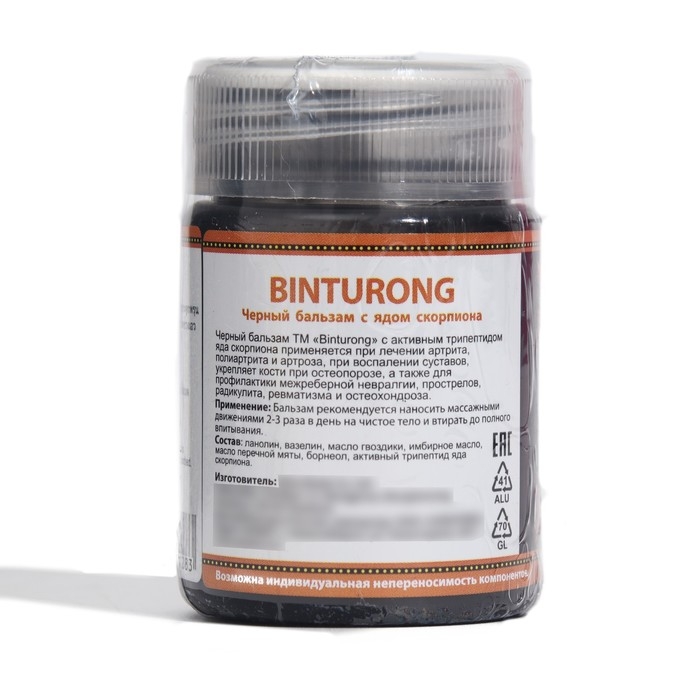 Чёрный бальзам для суставов Binturong с ядом скорпиона, при радикулите, ревматизме и остеохондрозе, 50 г