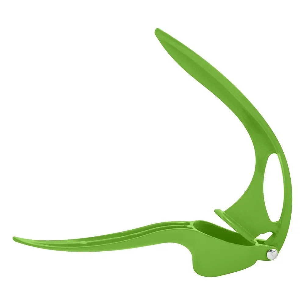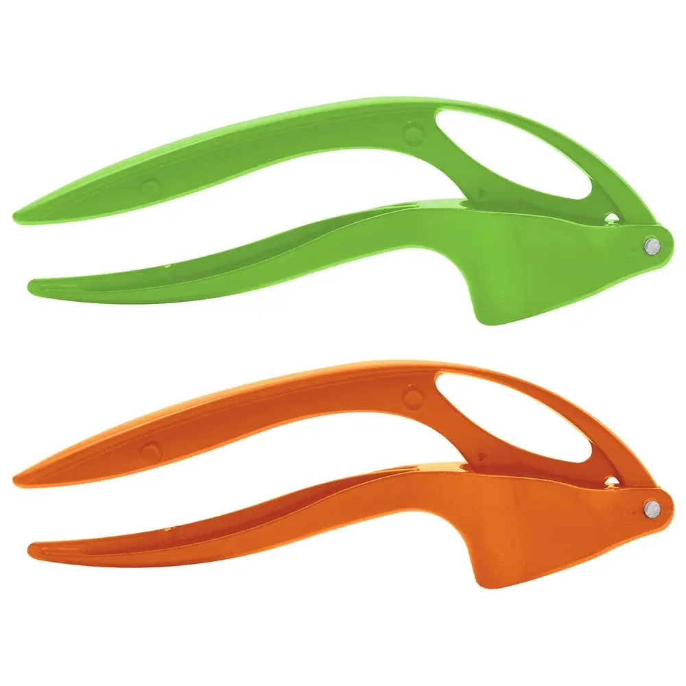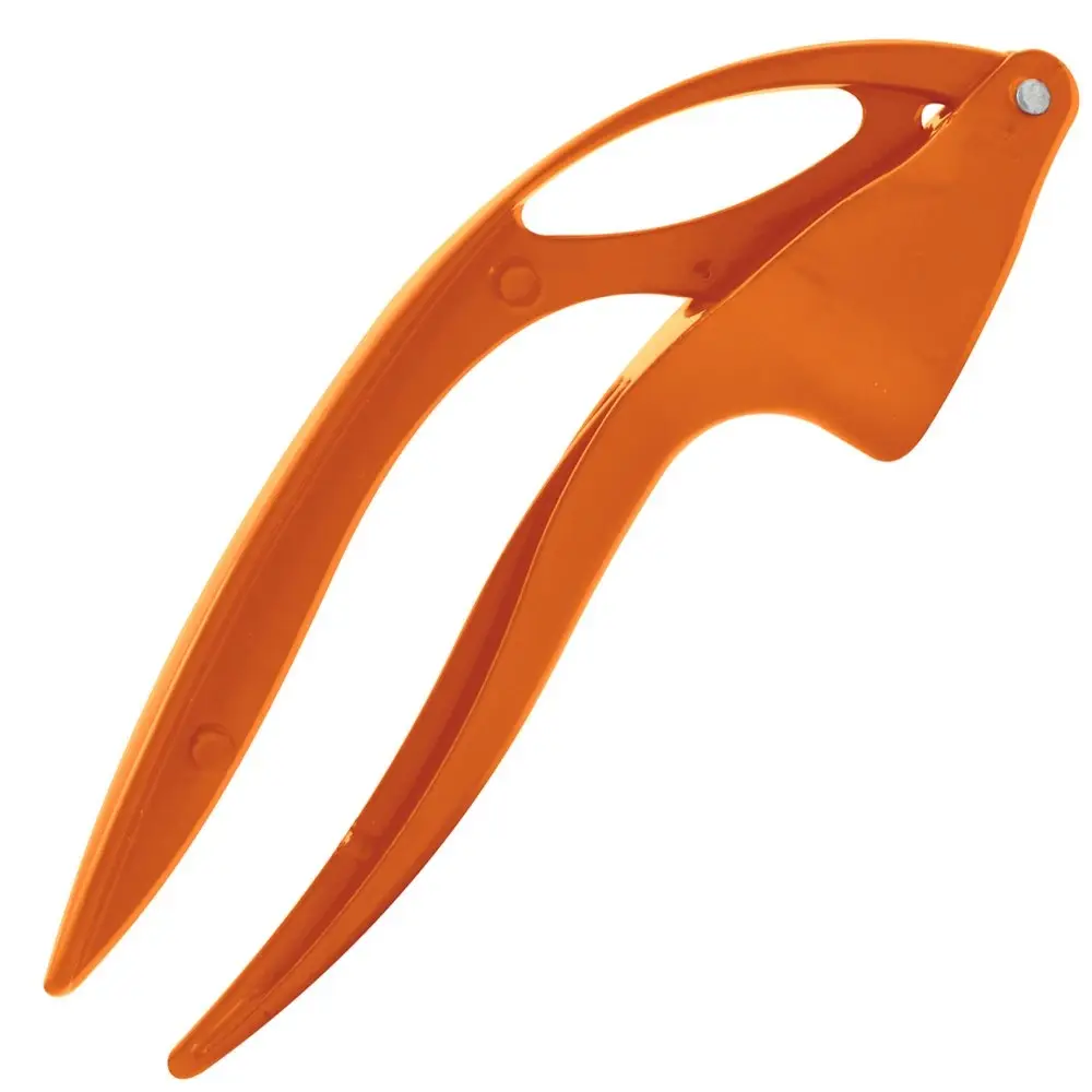 Чесноковыжималка используется для измельчения чеснока, устроена по принципу рычага – в чашу кладутся зубчики чеснока и придавливаются прессом. Кожица остается в чаше, а чесночная масса выходит наружу через мелкие отверстия. Изделие изготовлено из алюминия, покрытого эмалью. Модель представлена в желтом, оранжевом, зеленом цветах. После использования очистите чеснокодавилку и промойте ее с использованием жидких средств.