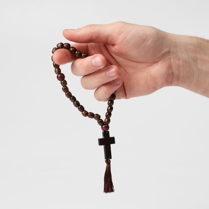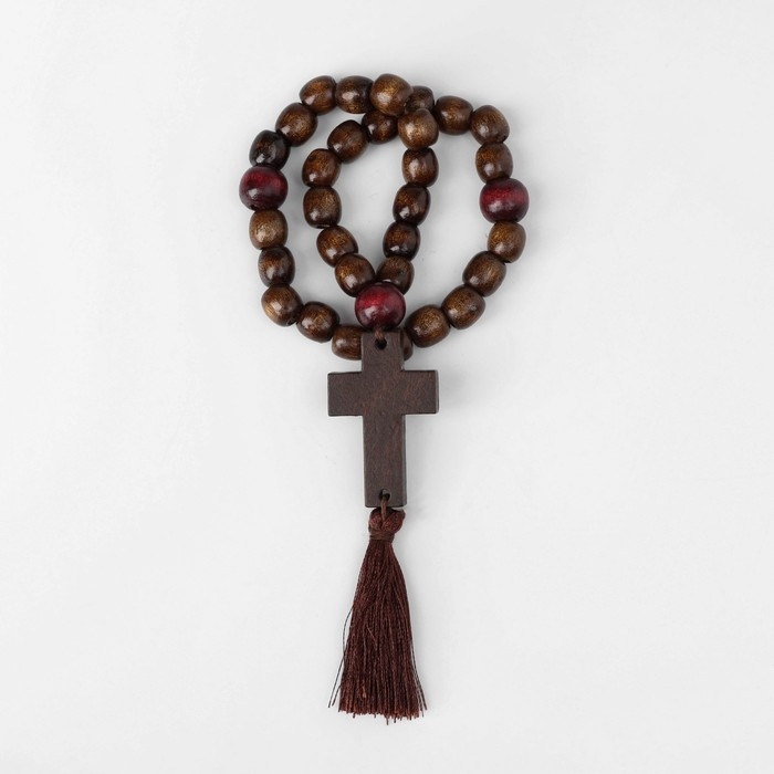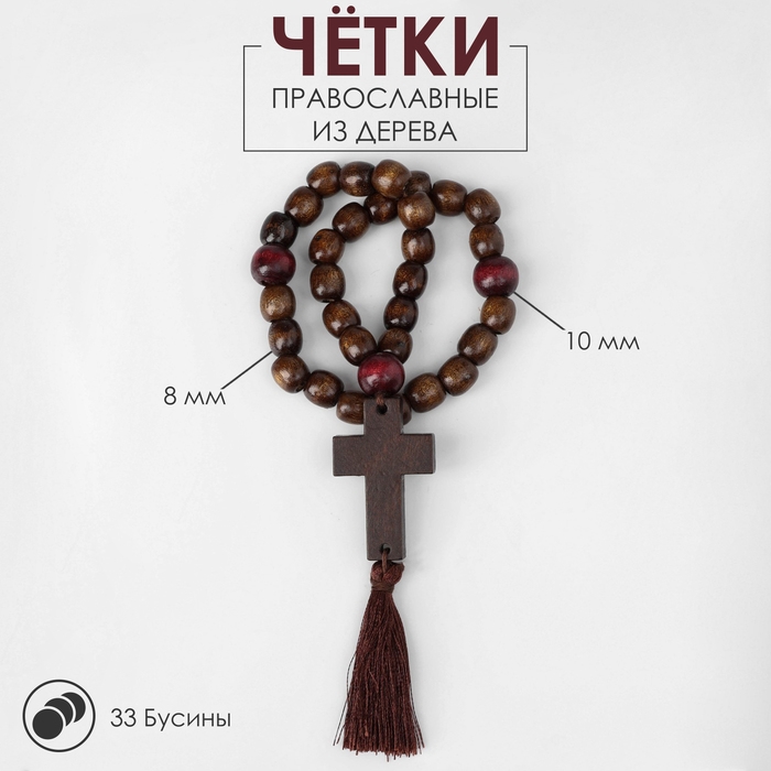 Чётки деревянные «Православные» с крестиком, кисть, 33 бусины, цвет коричневый