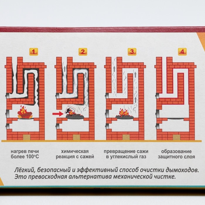 Специальное средство для очистки дымоходов от сажи, копоти и смол предназначено для использования в печах и каминах любого типа. Помогает предотвратить возгорание сажи и улучшает тягу.