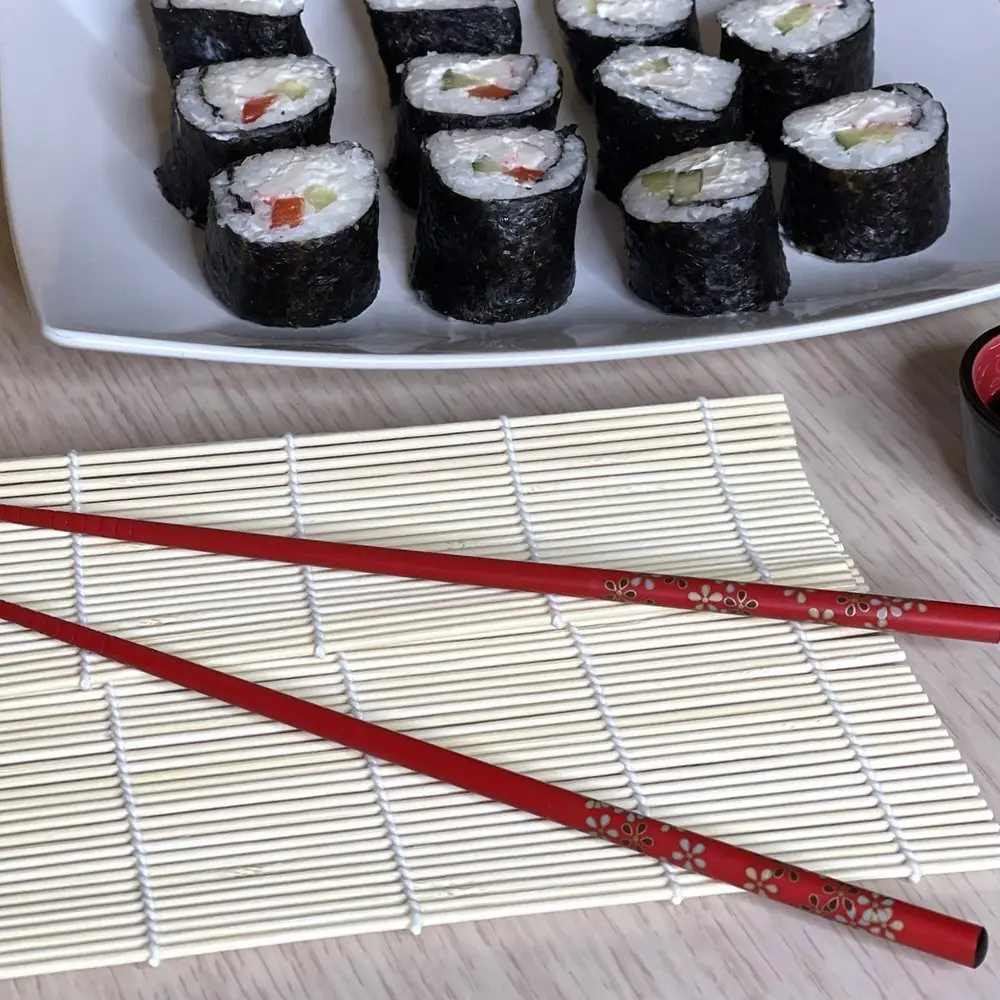 Коврик предназначен для заворачивания роллов и придания им ровной круглой или квадратной формы. Такой коврик необходим каждому, кто решил освоить навыки приготовления роллов в домашних условиях. Также этот коврик подойдёт для приготовления блюд тайской, вьетнамской и азиатской кухни. Подходит для начинающих и профессиональных кулинаров, легко сворачивается и не ломает листы нори. Для вашего удобства можете перед использованием обернуть коврик в пищевую плёнку. С этим ковриком роллы готовятся быстро и легко.